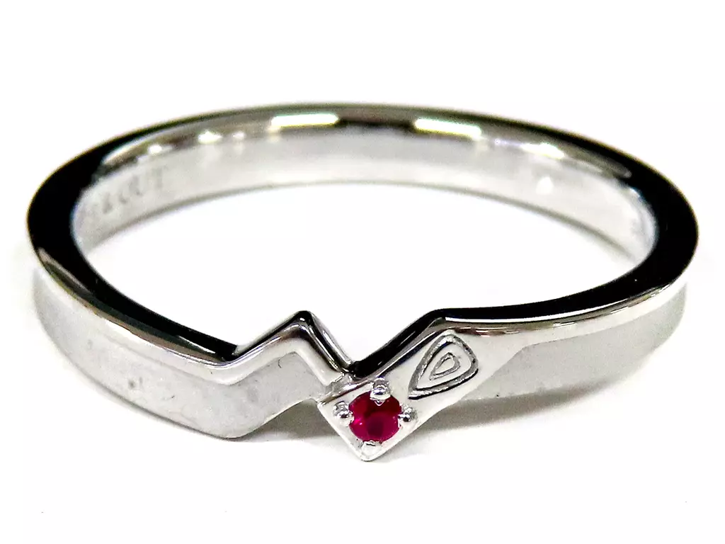 バーナビー・ブルックスJr.をイメージしたリングには、赤色の「ルビー」を中央に配置。ワイルドタイガーをイメージしたリングと同様に、内側には固有のマークが刻印されている。