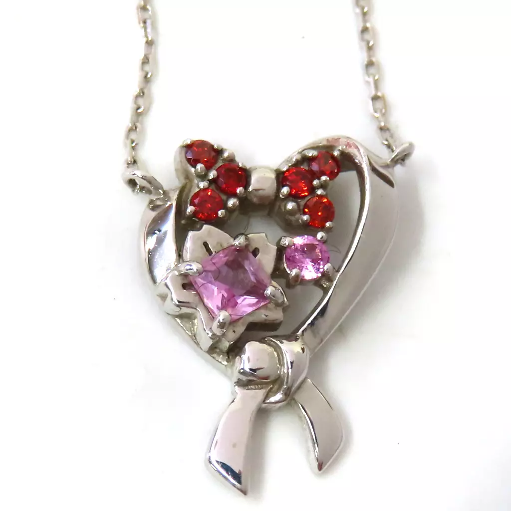 商品解説■「江戸川コナン」、「毛利蘭」をイメージしたネックレス。トレードマークの蝶ネクタイ型変声機と幼少期の「工藤新一」と「毛利蘭」が出会うきっかけを象徴するさくら組の名札のモチーフを配置しました。【商品詳細】サイズ:トップ約1.5cm素材:SV925(ロジウムコーティング)×シンセティックピンクルビー×キュービックジルコニアレット付属品:オリジナルジュエリーBOX