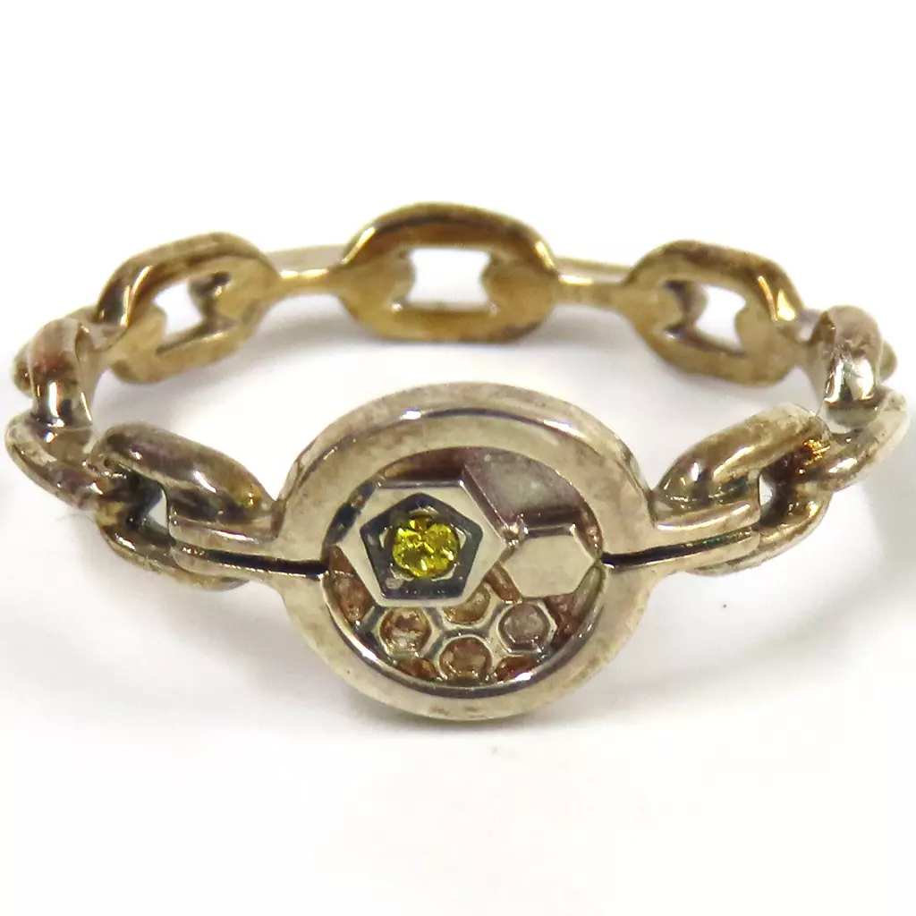 商品解説■蜂楽廻モデルは、彼の姓にちなんで「蜂の巣構造」をモチーフに。大小の六角形の配置により、心の中のかいぶつの表情が浮かびます。明るい髪色とリンクしたイエローのストーンもポイント。【商品詳細】サイズ:M(11号)素材:シルバー925