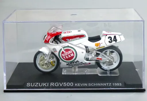 商品解説■こちらは、「隔週刊 チャンピオン・バイク・コレクション」 同梱品、1/24 SUZUKI RGV500 1993 #34(ホワイト×レッド)の単品です。車体にはMOTULなどのロゴがデザインされています。車名が刻まれた専用台座とともにクリアケースに封入されています。【商品詳細】サイズ:全長約8.5cmライダー:KEVIN SCHWANTZ※本商品には書籍、その他付録は付属致しません。予めご了承ください。