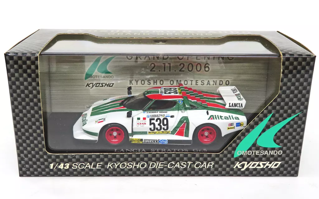 商品解説■LANCIA STRATOS Gr.5 #539(ホワイト×グリーン×レッド)が、1/43スケールのディスプレイモデルで登場です。こちらはKYOSHO OMOTESANDO GRAND OPENING記念の商品です。車名が刻まれた専用台座とともにクリアケースに封入されています。【商品詳細】サイズ:全長約9cm