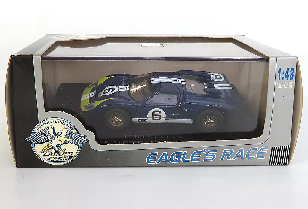 商品解説■「EAGLE’S RACE」に、1/43 FORD GT 40 1966 LE MANS #6(ネイビー×ホワイト×イエロー)がラインナップ。車名が刻まれた専用台座とともにクリアケースに封入されています。【商品詳細】サイズ:全長約10cmドライバー:MARIO ANDRETTI、BIANCHI