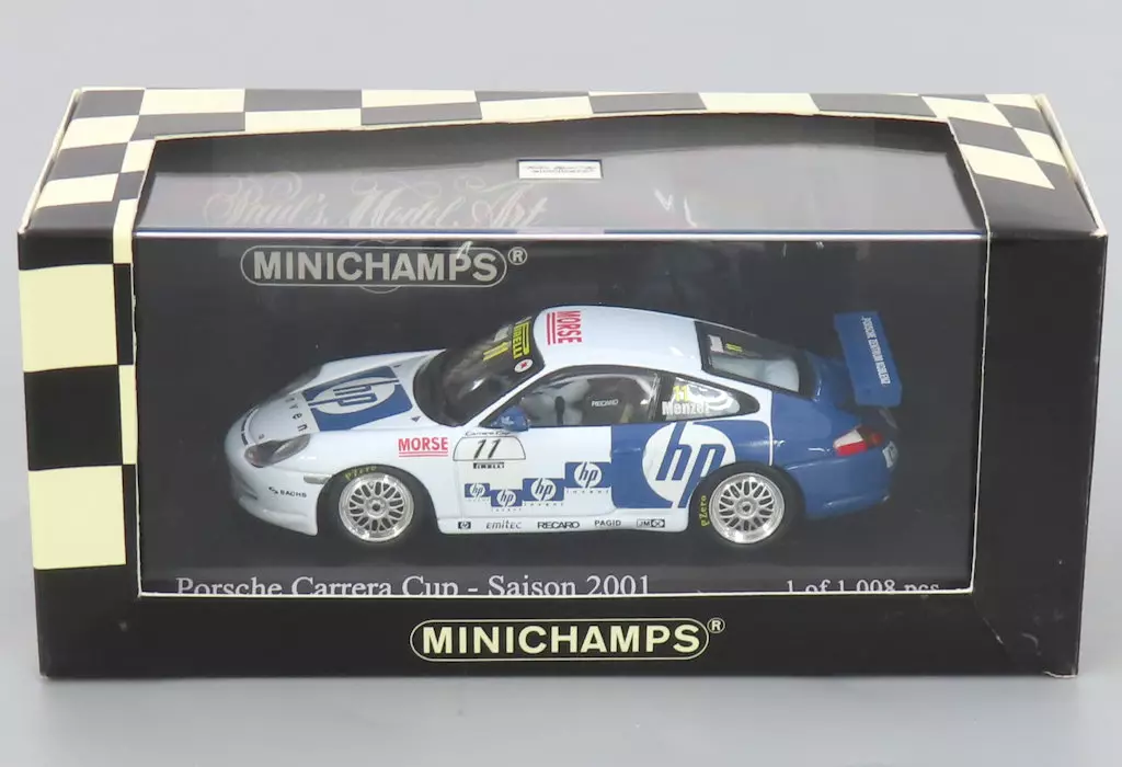 商品解説■Porsche Carrera Cup Saison 2001 #11(ホワイト×ブルー)が、1/43スケールのディスプレイモデルで登場です。車体にはhpなどのロゴがデザインされています。車名が刻まれた専用台座とともにクリアケースに封入されています。【商品詳細】サイズ:全長約10cm