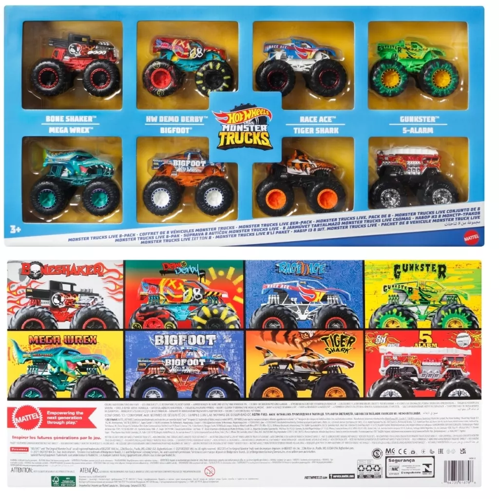商品解説■モンスタートラックのアニメに登場する人気キャラクターが8台セットになって登場! 【商品詳細】<セット内容>ボーンシェイカーデモダービーレース・エースガンクスターメガ・レックスビッグフットタイガー・シャークファイブ・アラームスケール:1/64