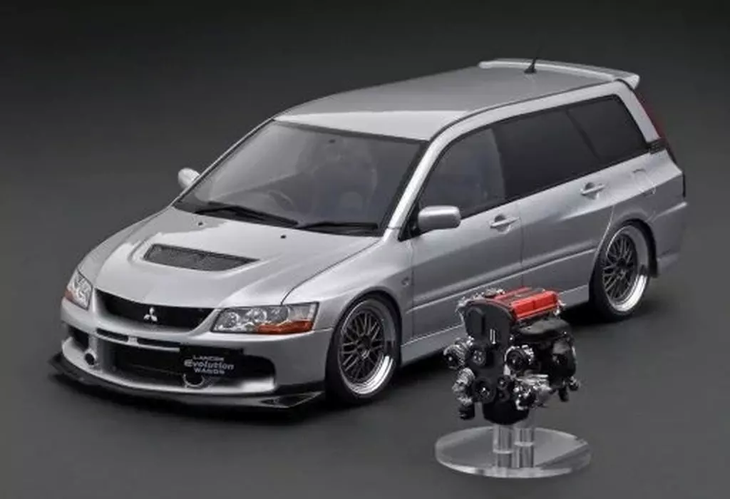 商品解説■「Lancer Evolution Wagon (CT9W)」を1/18スケールレジン素材でモデル化。ボディカラー:シルバー。BBS LMタイプ18インチホイール(ポリッシュ&ガンメタリック)にローダウン仕様。RALLIART製フロントリップに純正ルーフスポイラー、チタン焼け大径マフラー、純正レカロシート、純正MOMOステアリングホイールを装着。製品には同スケールの「4G63 MIVECエンジン」が付属します。【商品詳細】スケール:1/18素材:レジン