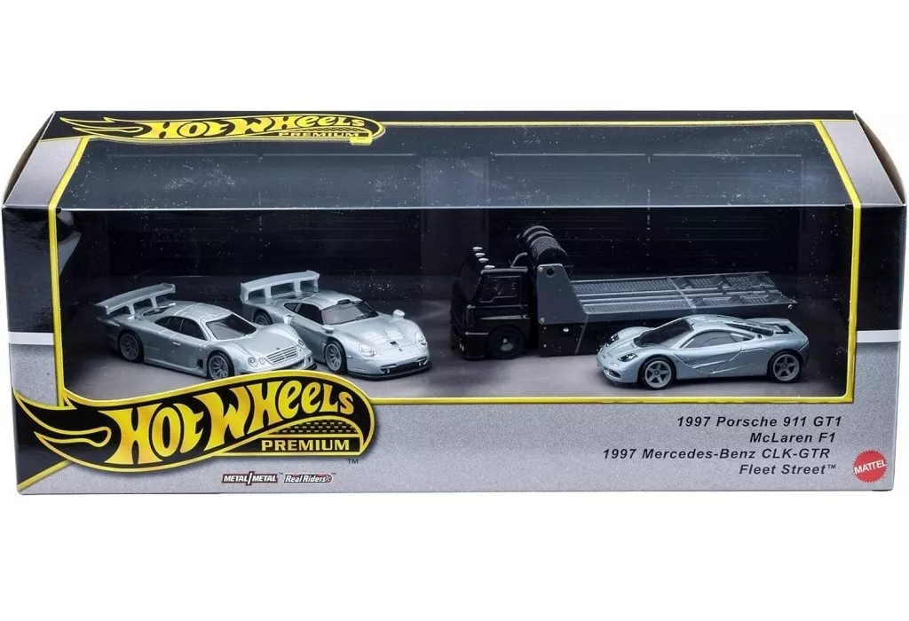 商品解説■1990年代のル・マン24時間レースから想起されるスーパースポーツ3台と、ホットウィール・オリジナル・デザインのトランスポーター、フリート ストリートを加えた4台セット。【商品詳細】スケール:1/64