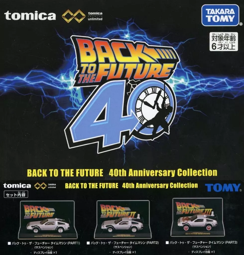 商品解説■「バック・トゥ・ザ・フューチャー」より、トミカプレミアムunlimitedに、BACK TO THE FUTURE 40th Anniversary Collection(3台セット)がラインナップ。