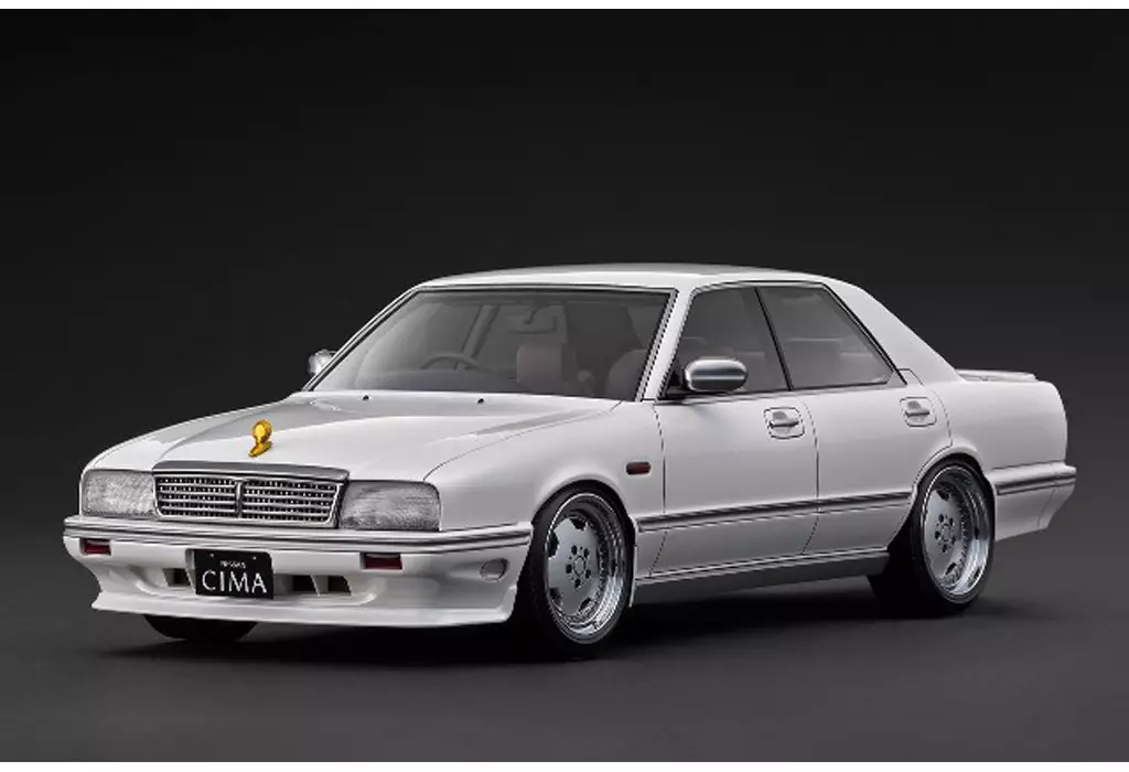 商品解説■「CEDRIC CIMA (Y31) 後期型」を1/18スケールレジンモデルで再現。ボディカラー:パールホワイト。内装カラー:ベージュ。Stichタイプ18インチホイール(ポリッシュ&シルバー)にローダウン仕様。フロントリップスポイラー、トランクスポイラー、デュアルマフラー、電話アンテナ、ボンネットマスコット(ゴールド)、純正シート、純正ステアリングを装着。※画像は試作品です。【商品詳細】スケール:1/18素材:レジン