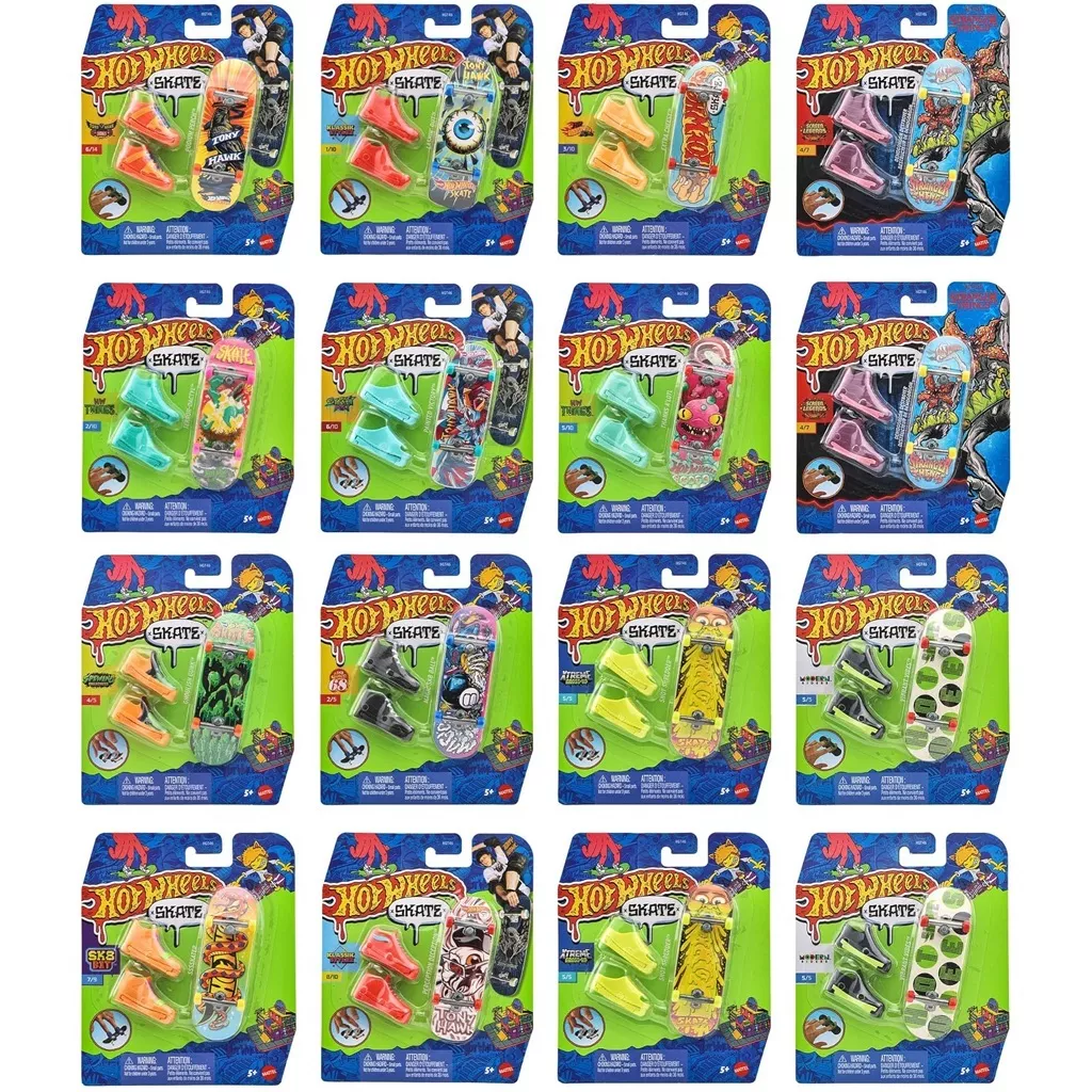 スケートボード界のレジェンド、トニー・ホーク氏とのコラボ商品や、ホットウィール・オリジナルデザインがミックスされたアソート。