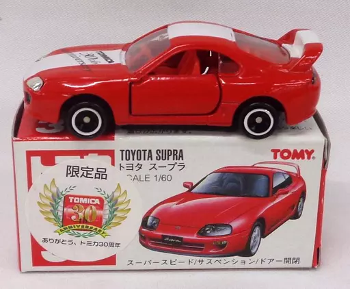 商品解説■「トミカ」に、1/60 トヨタ スープラ(レッド×ホワイト)がラインナップ。こちらの商品は、トミカ30周年限定品となっております。【商品詳細】サイズ:全長約7.5cm仕様:スーパースピード/サスペンション/ドアー開閉