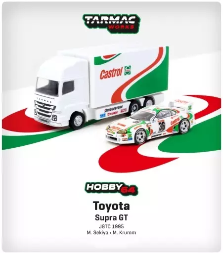 商品解説■1995年のJGTC(全日本GT選手権)に出場した「Toyota Supra GT」を1/64スケールダイキャスト素材でモデル化。大型リヤウィング、ライト類、ミラーを別パーツとし、複雑なマーク類はタンポ印刷とデカールで再現しました。同 Castrolカラーのトラック(トランスポーター)を付属。荷台のパネル内に車両を収納した新パッケージを採用しました。【商品詳細】スケール:1/64