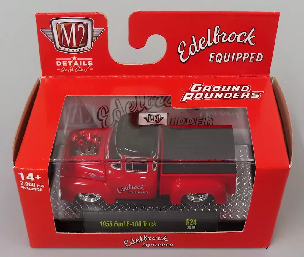 ミニカー 1/64 1956 Ford F100 Truck “EDELBROCK EQUIPPED”(ブライトレッド) 「Ground Pounders Release 24」 [82161-24]