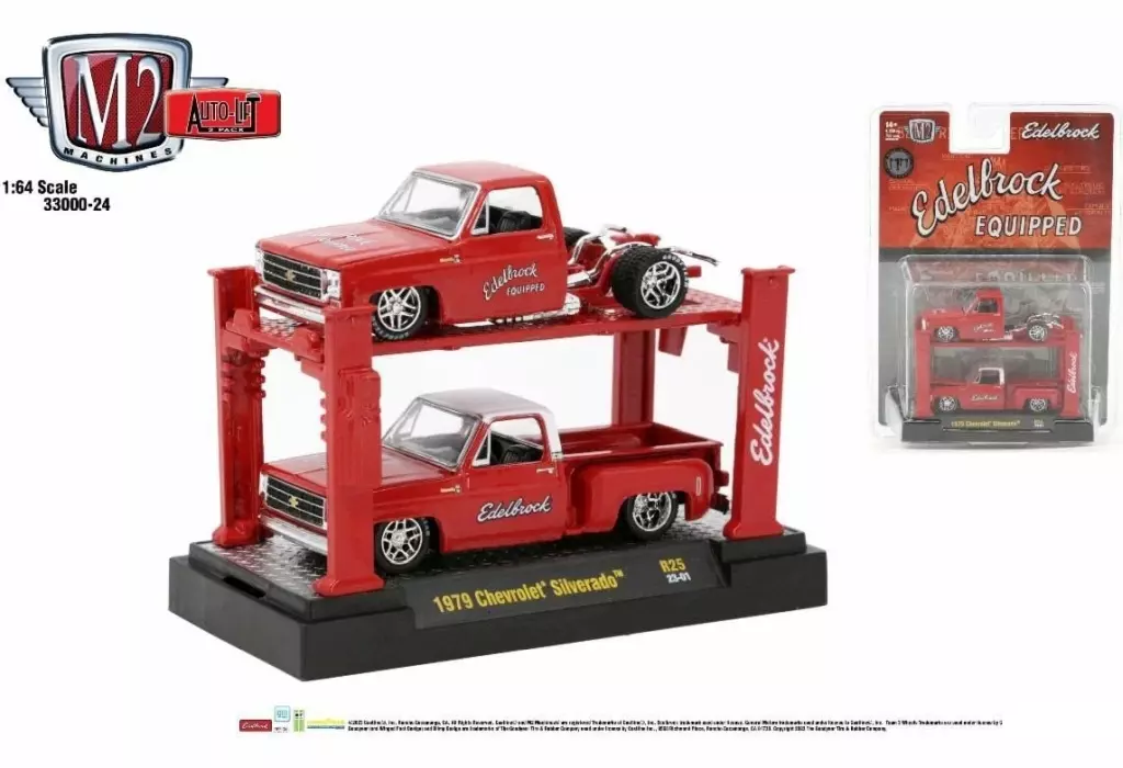 ミニカー 1/64 1979 Chevrolet Silverado “EDELBROCK” - Bright Red + 1979 Chevrolet Silverado Step Side “EDELBROCK” - Bright Red [33000-25]