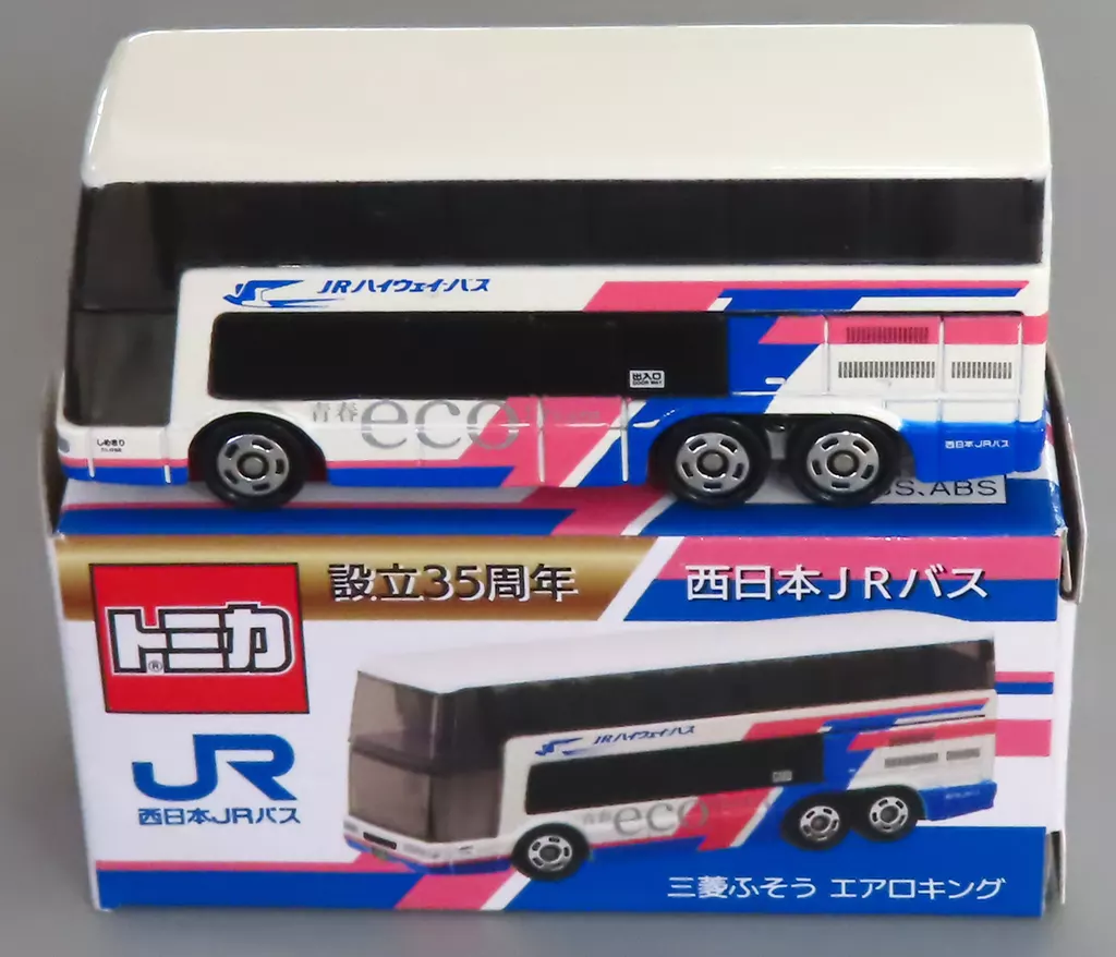 商品解説■「トミカ」に、1/156 三菱ふそう エアロキング 西日本JRバス(ホワイト×ブルー×ピンク)がラインナップ。こちらは設立35周年の商品です。【商品詳細】サイズ:全長約8cm