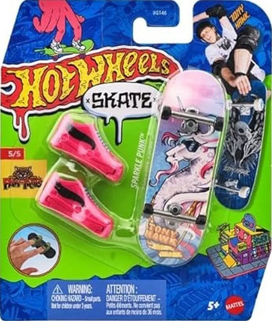 商品解説■フィンガーボードとシューズがセットになったホットウィール・スケートの新しいアソートが登場!スケートボード界のレジェンド、トニー・ホーク氏とのコラボ商品や、ホットウィール・オリジナルデザインがミックスされたアソート。集めて飾ったり、着脱式のシューズに指を入れて滑らせて遊ぶことも可能。スケートボードはもちろん、シューズもバリエーションに富んでいて遊び心たっぷりのシリーズ。【商品詳細】スケール:1/64
