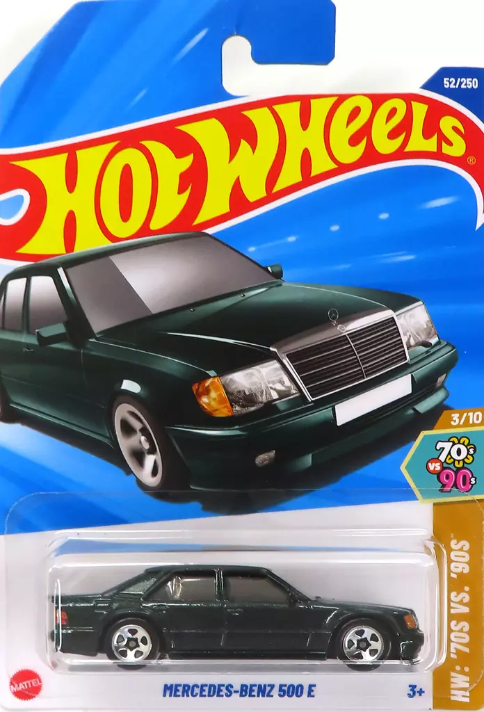 商品解説■「Hot Wheels HW:’70S VS. ’90S」に、1/64 MERCEDS-BENZ 500E(グリーン)がラインナップ。