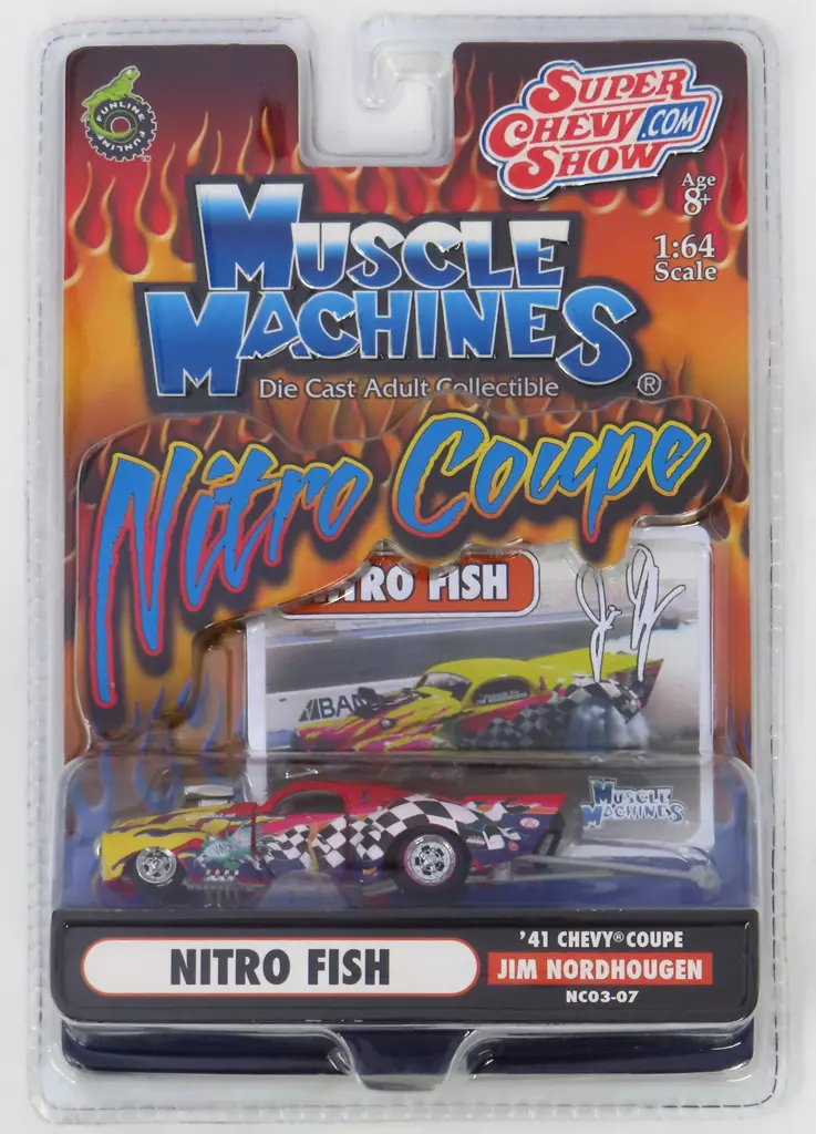 商品解説■「SUPER CHEVY SHOW」より、MUSCLE MACHINES Nitro Coupeに、1/64 NITRO FISH ’41 CHEVY COUPE(イエロー×レッド×バイオレット)がラインナップ。【商品詳細】サイズ:全長約11cm