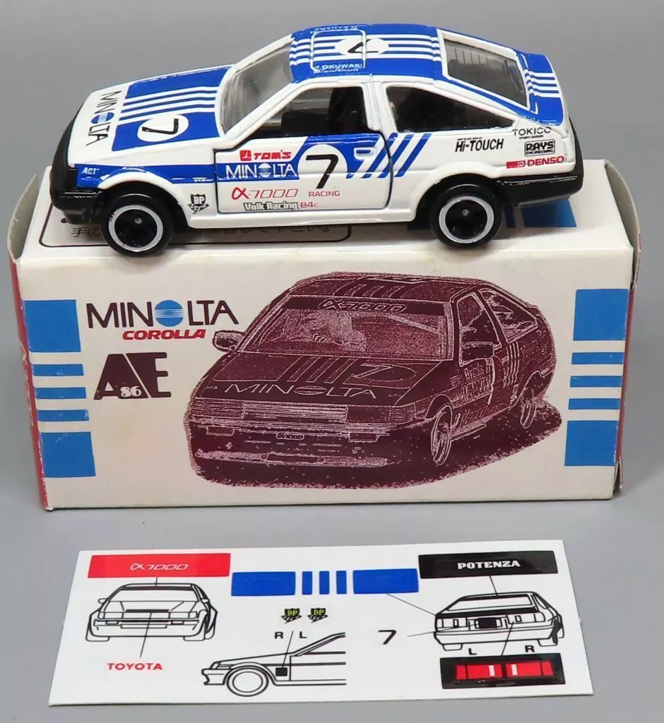 商品解説■「トミカ」に、1/61 トヨタ カローラ レビン MINOLTA α-7000 TOM’S #7(ホワイト×ブルー)がラインナップ。こちらは、アイアイアド・カンパニー特注の商品です。【商品詳細】付属品:シールサイズ:全長約7cm