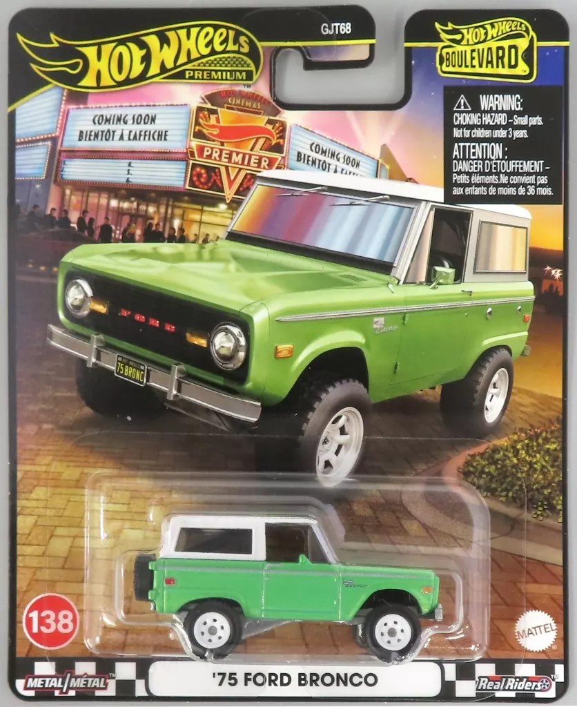 商品解説■1966年にフォード初のSUVとして登場したフォード ブロンコ。ホットウィールが新金型アイテムの題材に選んだのは、初代ブロンコの最終フェイズにあたる1975年型。実車の特徴を忠実に捉えたボディはルーフと車体色が異なる彩色となるなど非常に凝った仕上げとなっている。【商品詳細】スケール:1/64