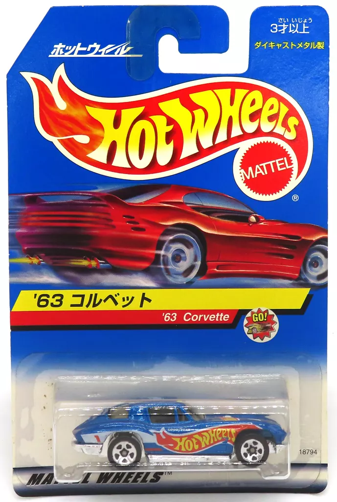 ミニカー 1/64 ’63 コルベット(ブルー) 「Hot Wheels」 [18794]