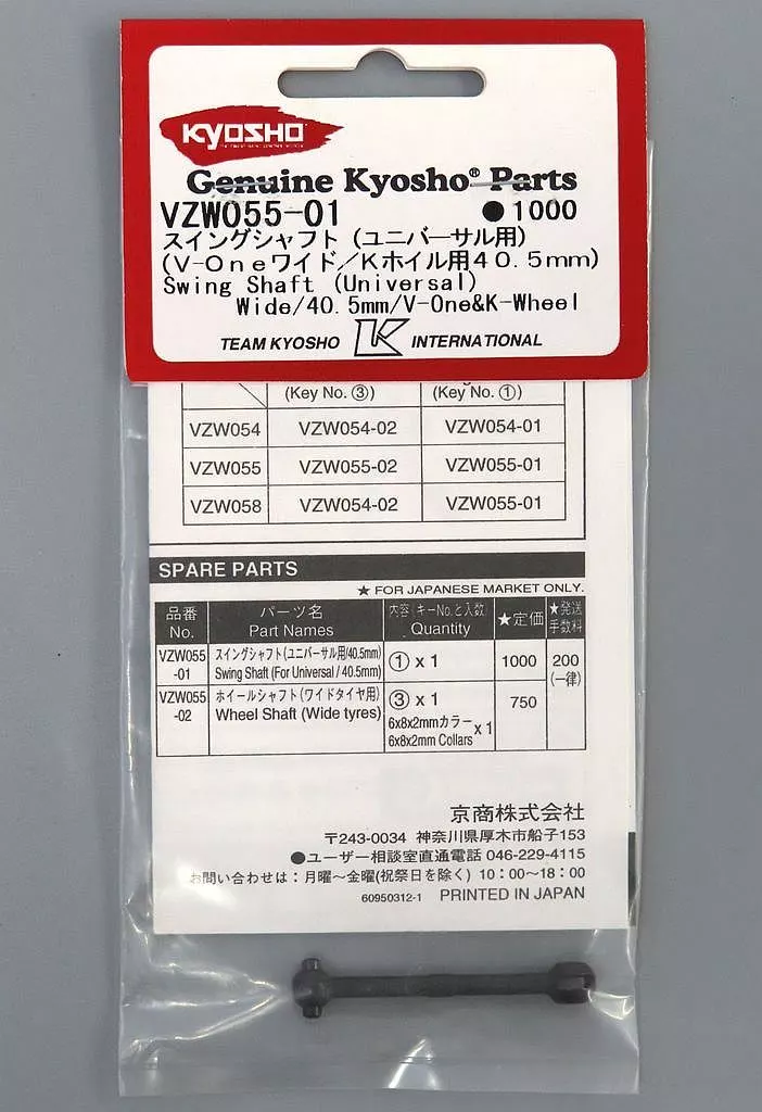 ラジコン スイングシャフト(ユニバーサル用)(V-Oneワイド/Kホイル用40.5mm) [VZW055-01]