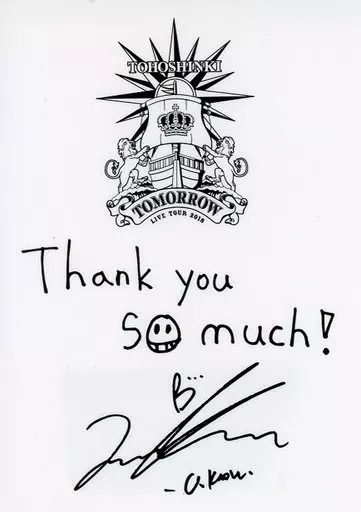 商品解説■オンラインショップにて「東方神起 LIVE TOUR 2018 ~TOMORROW~」グッズを5000円購入毎に1枚プレゼントされたメンバーメッセージ&サイン入りレシート風ステッカーです。【商品詳細】サイズ:約縦78×横55mm