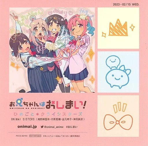 商品解説■CD「ONIMAI SISTERS / ひめごと クライシスターズ ~TVアニメ「お兄ちゃんはおしまい!」EDテーマ」初回封入特典の「スペシャルステッカー」です。CD及びその他特典は付属しません、予めご了承ください。【商品詳細】サイズ:12.5×12cm