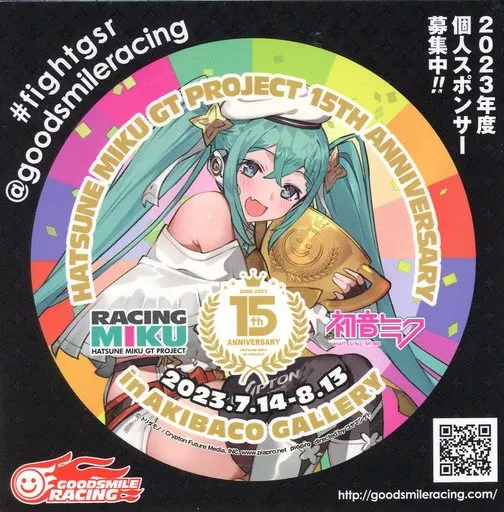 商品解説■「初音ミク GTプロジェクト15th Anniversary展」来場者特典の「15th Aniversary ステッカー」になります。