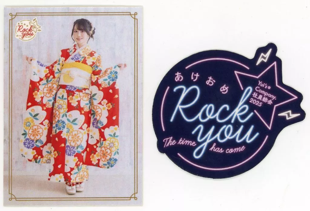商品解説■「Yui’s*company. 社員総会2025 ~あけおめ Rock you ☆ The time has come~」のグッズです。【商品詳細】<セット内容>振袖(全身)、イベントロゴサイズ:約W50×H70mm角内素材:紙