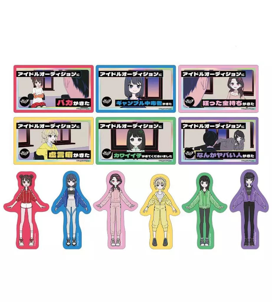 『ネガティヴハッピィ』より、トレーディングダイカットステッカーの登場です。