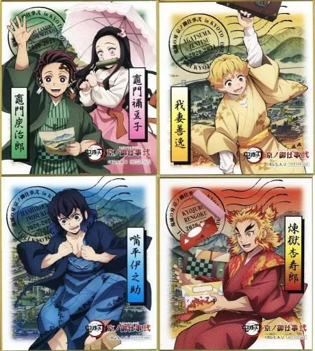 商品解説■「鬼滅の刃×嵐電×映画村×京都市交通局 京ノ御仕事弐」コラボゲーム 鬼殺隊緊急指令 消えた柱を探せ!景品の『特製ミニ色紙』全4種セットです。【商品詳細】<セット内容>竈門炭治郎&竈門禰豆子我妻善逸嘴平伊之助煉獄杏寿郎サイズ:約135×120mm