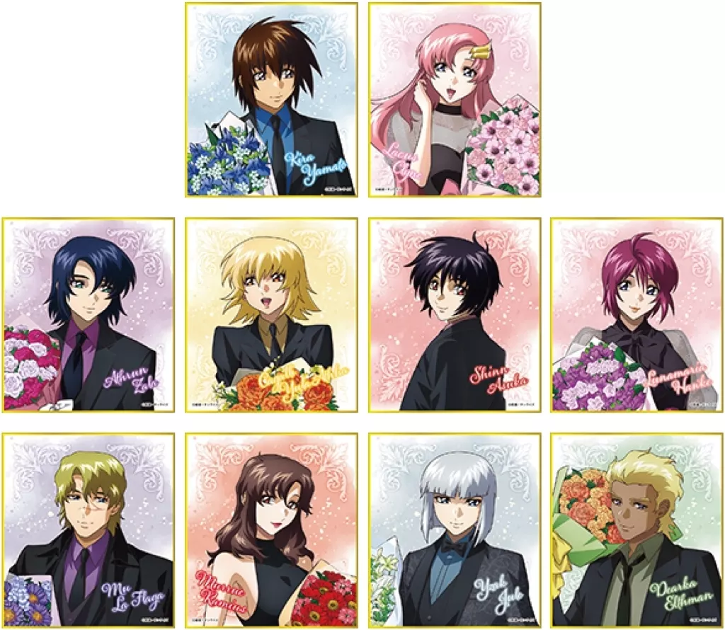 商品解説■新規描き下ろしイラストを使用したミニ色紙コレクションです。ドレスアップ&花束を持ったキャラクターたちのビジュアルに注目です。【商品詳細】全10種類サイズ:幅約12.1cm×高さ約13.6cm素材:紙(C)創通・サンライズ<ラインナップ>キラ・ヤマトラクス・クラインアスラン・ザラカガリ・ユラ・アスハシン・アスカルナマリア・ホークムウ・ラ・フラガマリュー・ラミアスイザーク・ジュールディアッカ・エルスマン