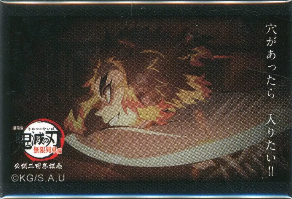 商品解説■「劇場版 鬼滅の刃 無限列車編 公開二周年記念」の「煉獄杏寿郎「119の台詞」ランダムスクエア缶バッジC」になります。