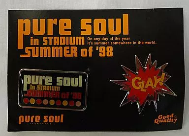 商品解説■GLAYのコンサート「pure soul in STADIUM ”SUMMER of ’98”」で販売されたピンズセットです。ツアーロゴと「GLAY」ロゴのピンズ2個セットになります。
