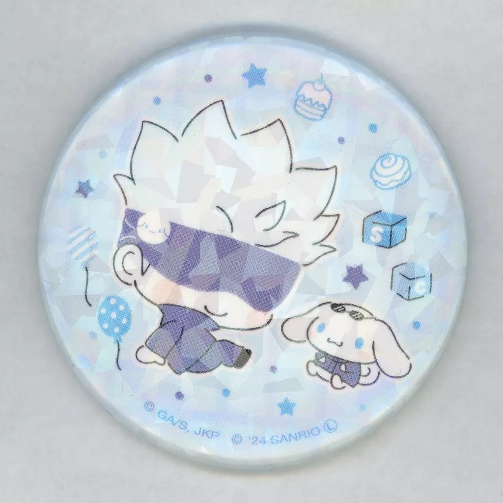 バッジ・ピンズ 五条悟×シナモロール 「呪術廻戦 第2期 渋谷事変×サンリオキャラクターズ ホログラム缶バッジ」