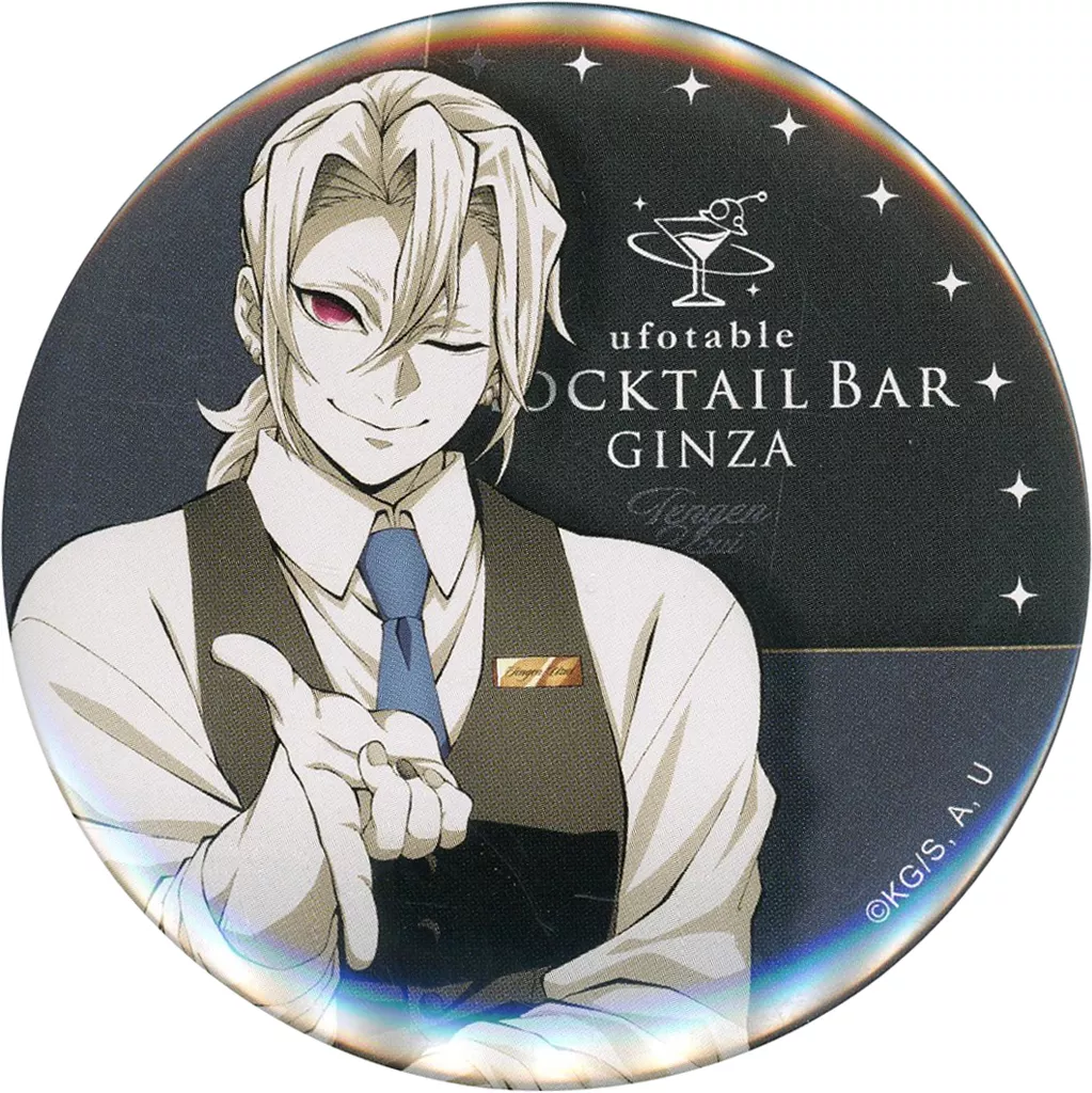 バッジ・ピンズ 宇髄天元 『本日のサプライズバーテンダー』75mm缶バッジ 「鬼滅の刃×ufotable MOCKTAIL BAR GINZA」 日替わりデザート限定グッズ
