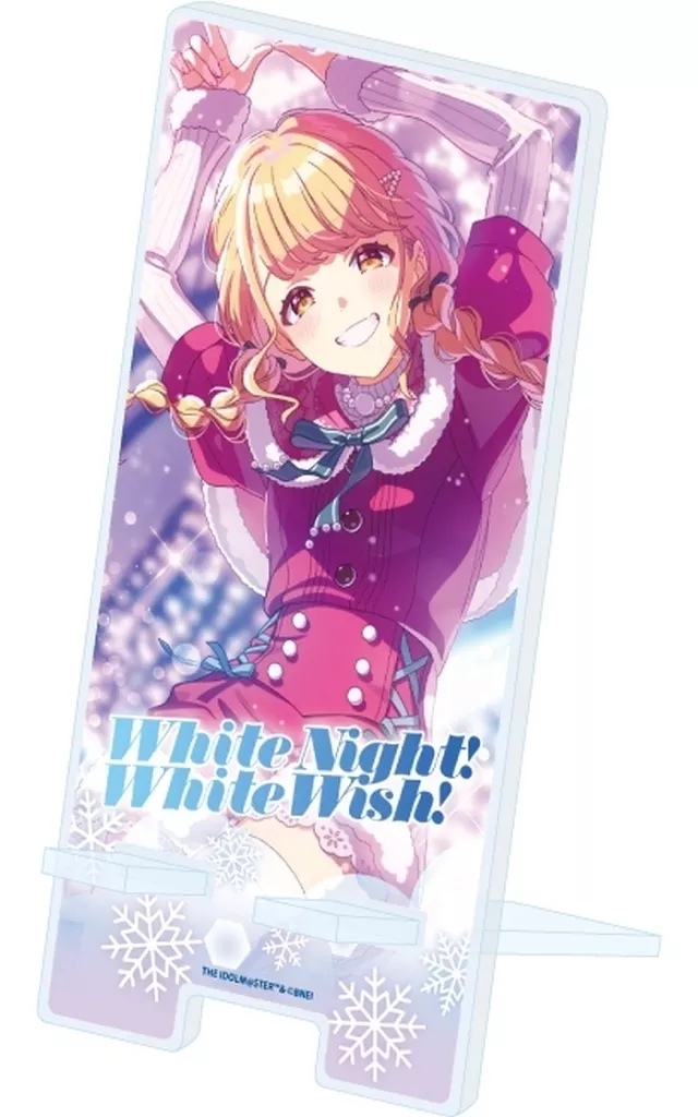 商品解説■アクリル製のスマホスタンドです。2枚を組み合わせる形状で、充電コードが通る穴が下部についています。【商品詳細】サイズ:約H150×W70×D6mm素材:アクリル(C)THE IDOLM@STER TM & (C)Bandai Namco Entertainment Inc.