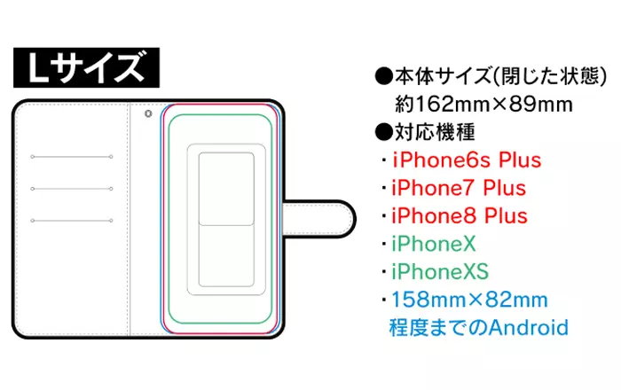 対応機種:iPhone:6s Plus/7 Plus/8 Plus/X/XS相当、Android:158mm×82mm程度までの機種
