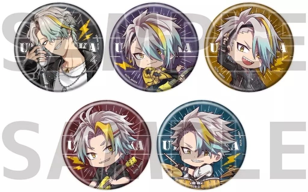 商品解説■こちらの商品は、BOX販売(1BOX5個入り)となります。キラキラなホログラム仕様の57mm缶バッジです。【商品詳細】全5種類サイズ:約57mm素材:金属、紙/フィルム(C)UTAI_MAKEA<ラインナップ>歌衣メイカ(等身)歌衣メイカ(デフォルメ)歌衣メイカ(黒黄色ギター)歌衣メイカ(黄色ベース)歌衣メイカ(ドラム)