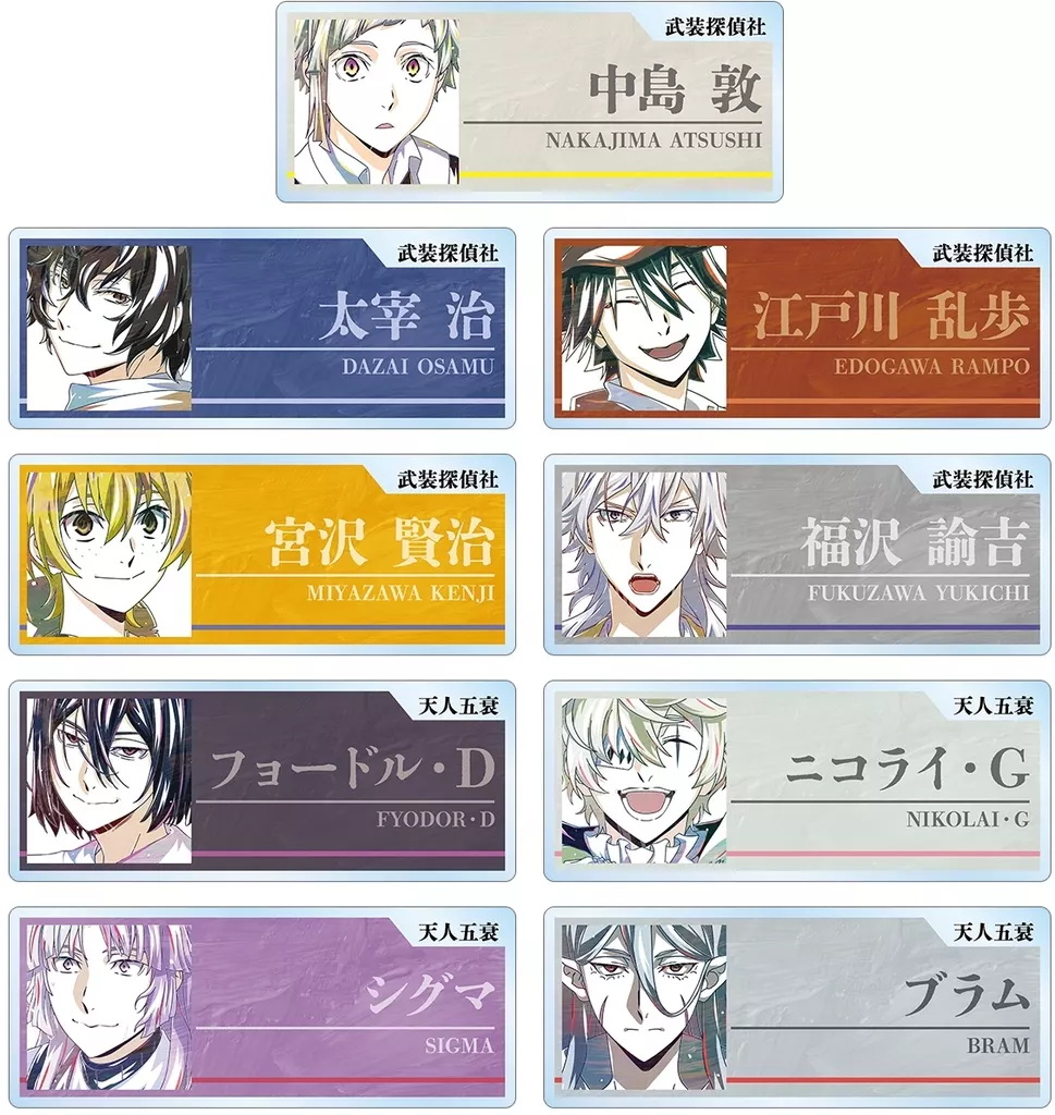 商品解説■「文豪ストレイドッグス」より、『トレーディング Ani-Art 第4弾 アクリルネームプレート』の登場です。【商品詳細】全9種類サイズ:約68mm×27mm、厚み:3mm素材:アクリル<ラインナップ>中島敦太宰治江戸川乱歩宮沢賢治福沢諭吉フョードル・Dニコライ・Gシグマブラム