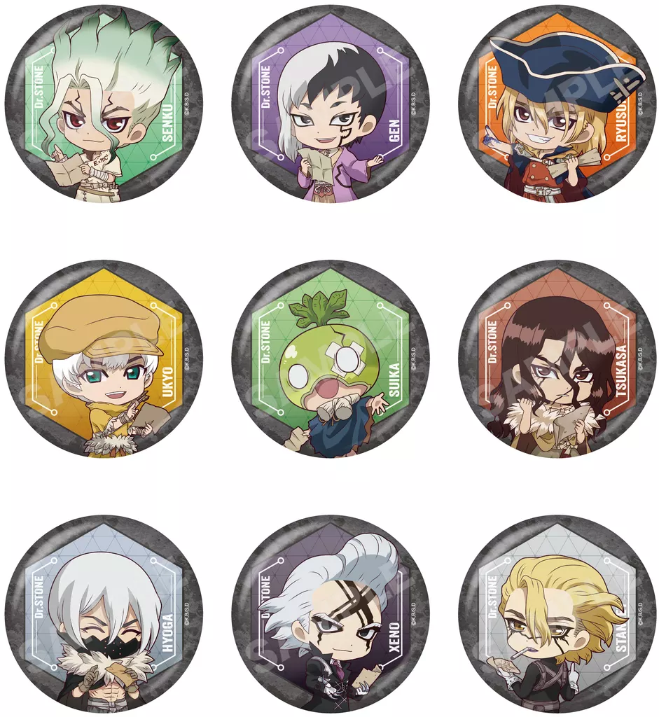 商品解説■「Dr.STONE」より、『NAVI ME 缶バッジ 01』の登場です。【商品詳細】全9種類サイズ:約56mm素材:ブリキ、PET、紙<ラインナップ>石神千空あさぎりゲン七海龍水西園寺羽京スイカ獅子王司氷月Dr.ゼノスタンリー・スナイダー