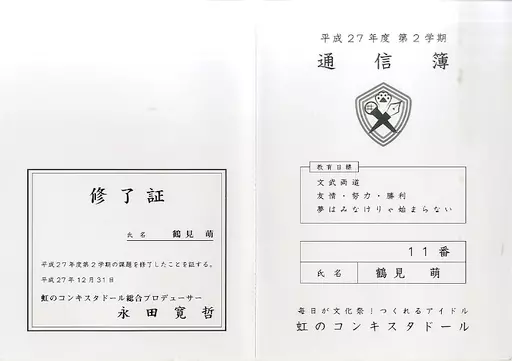 紙製品 鶴見萌(虹のコンキスタドール) 平成27年度 第2学期 通信簿