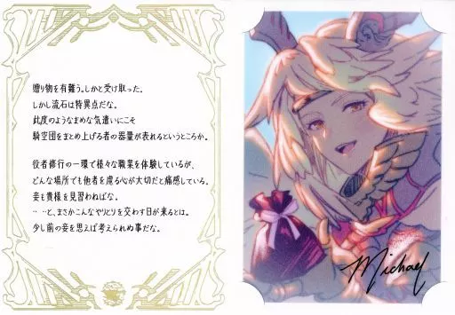 紙製品 ミカエル ブロマイド付きメッセージカード 「GRANBLUE FANTASY-グランブルーファンタジー-」 2023年バレンタイン・ホワイトデーキャンペーン