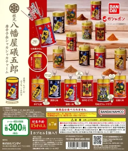 商品解説■「根元 八幡屋礒五郎 唐からし缶シャカシャカチャーム」のガチャ台紙です。
