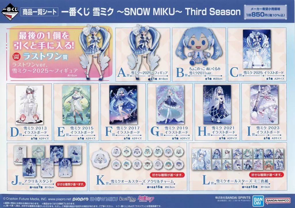 商品解説■「一番くじ 雪ミク ~SNOW MIKU~ Third Season」の「商品一覧シート」になります。