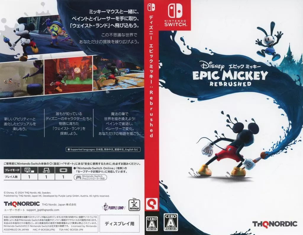 商品解説■Switchソフト「 ディズニー エピックミッキー:Rebrushied」の「販促着せ替えジャケット」です。