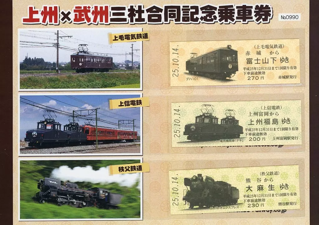 紙製品 上州×武州 三社合同記念乗車券 「上毛電気鉄道」