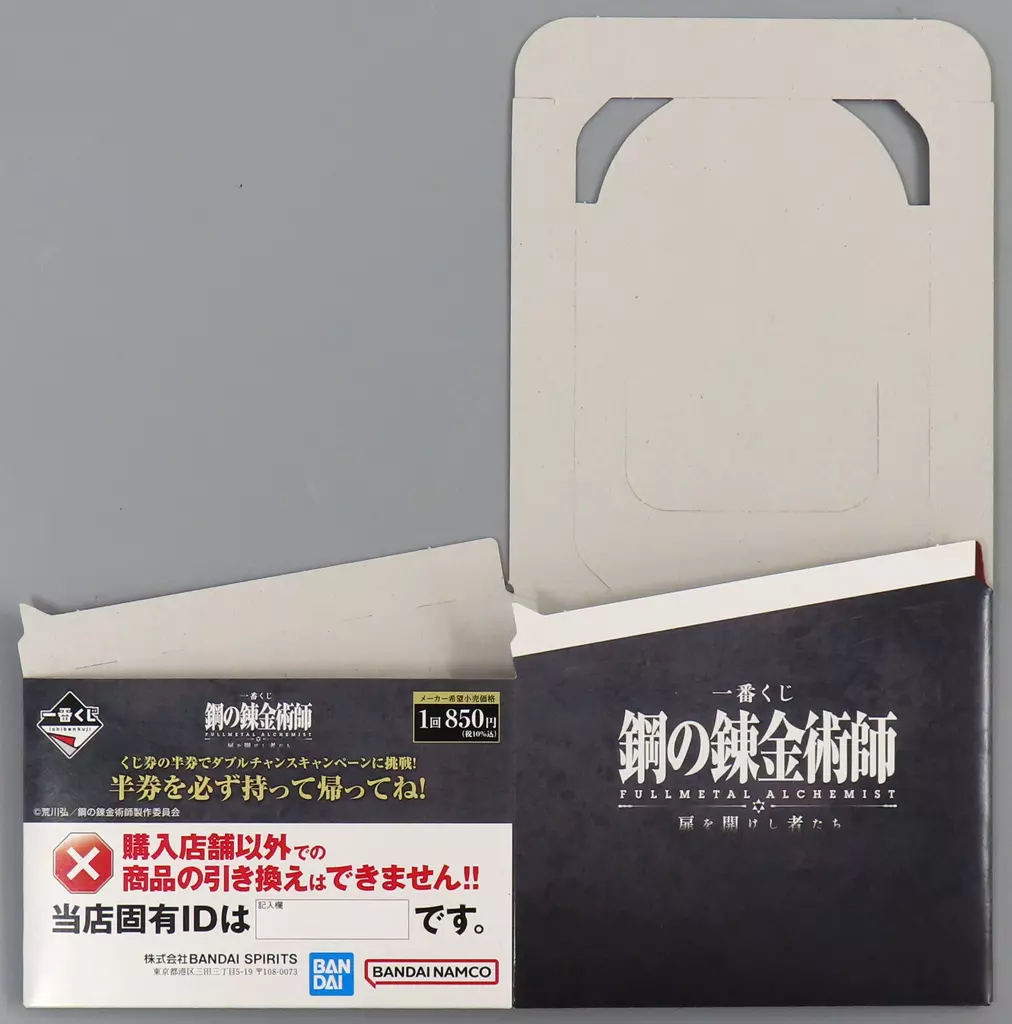 商品解説■「一番くじ 鋼の錬金術師 FULLMETAL ALCHEMIST 扉を開けし者たち」の「くじ券BOX」です。