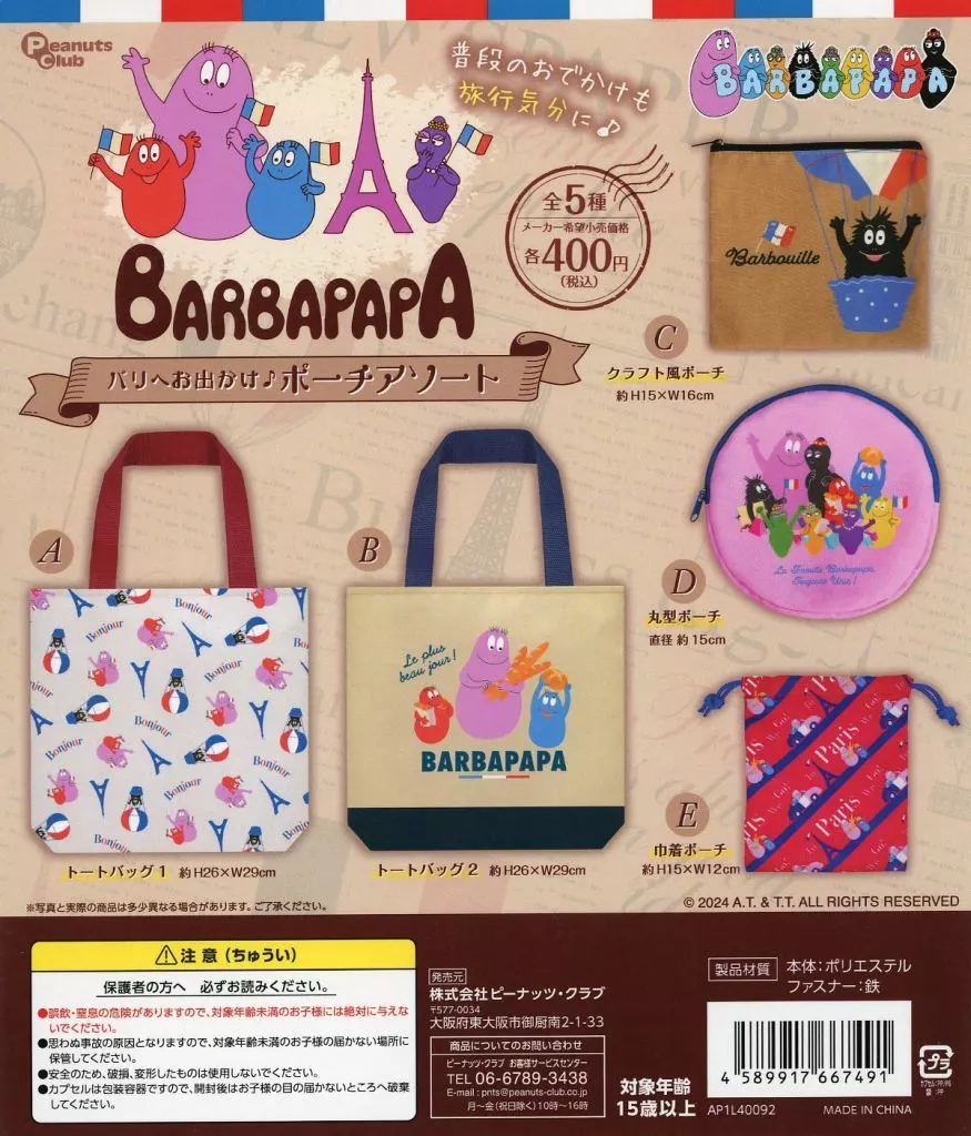 紙製品 ガチャ台紙 「バーバパパ パリへお出かけ ポーチアソート」