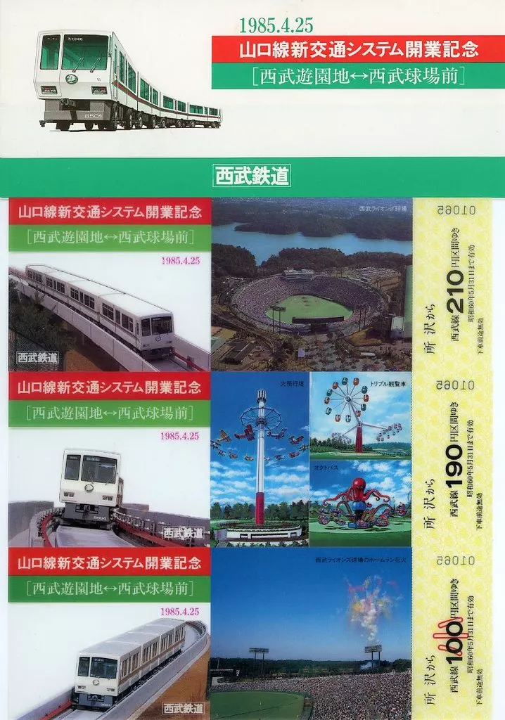 紙製品 西武鉄道 山口線新交通システム開業記念 [西武遊園地?~西武球場前] 乗車券